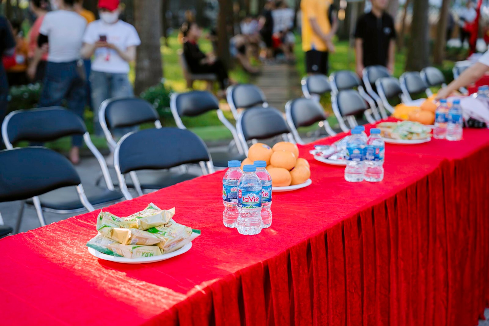 - Khu vực đón tiếp bàn đại biểu đươc chuẩn bị chỉn chu và đầy đủ nước uống, tráng miệng, hoa quả dành cho khách mời, Ban lãnh đạo công ty