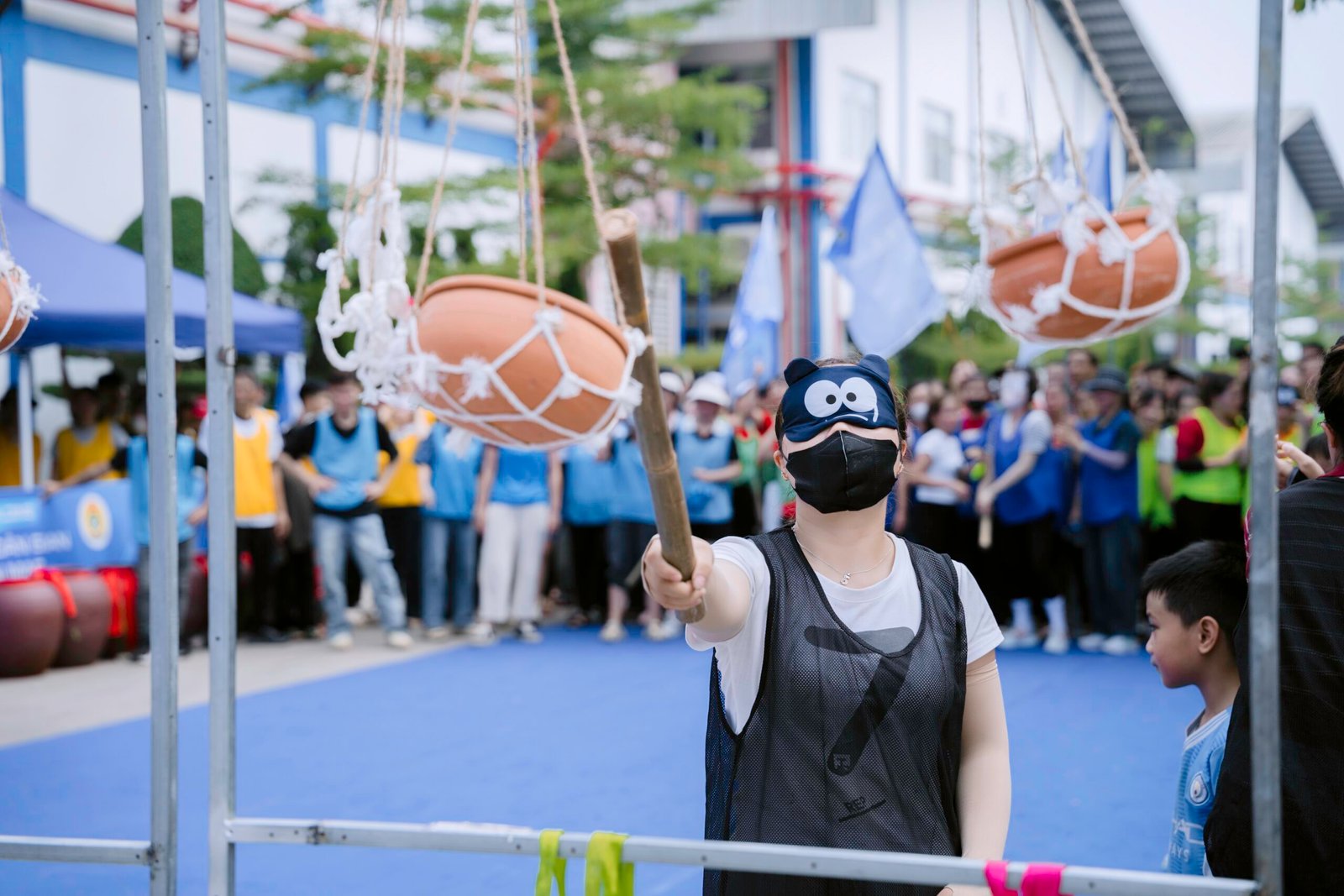 Các hoạt động như kéo co, nhảy bao bố, chuyền chanh, đổ nước vào chai, bịt mắt bắt vịt, đi cà kheo, ném vòng cổ chai… đã mang đến những giây phút vừa vui nhộn, vừa ý nghĩa.