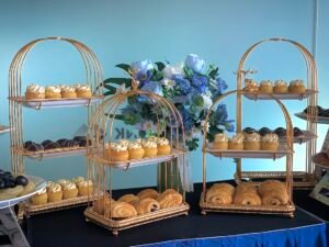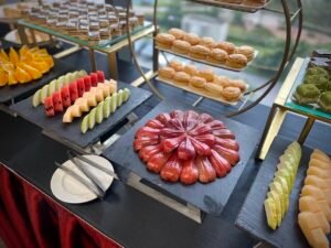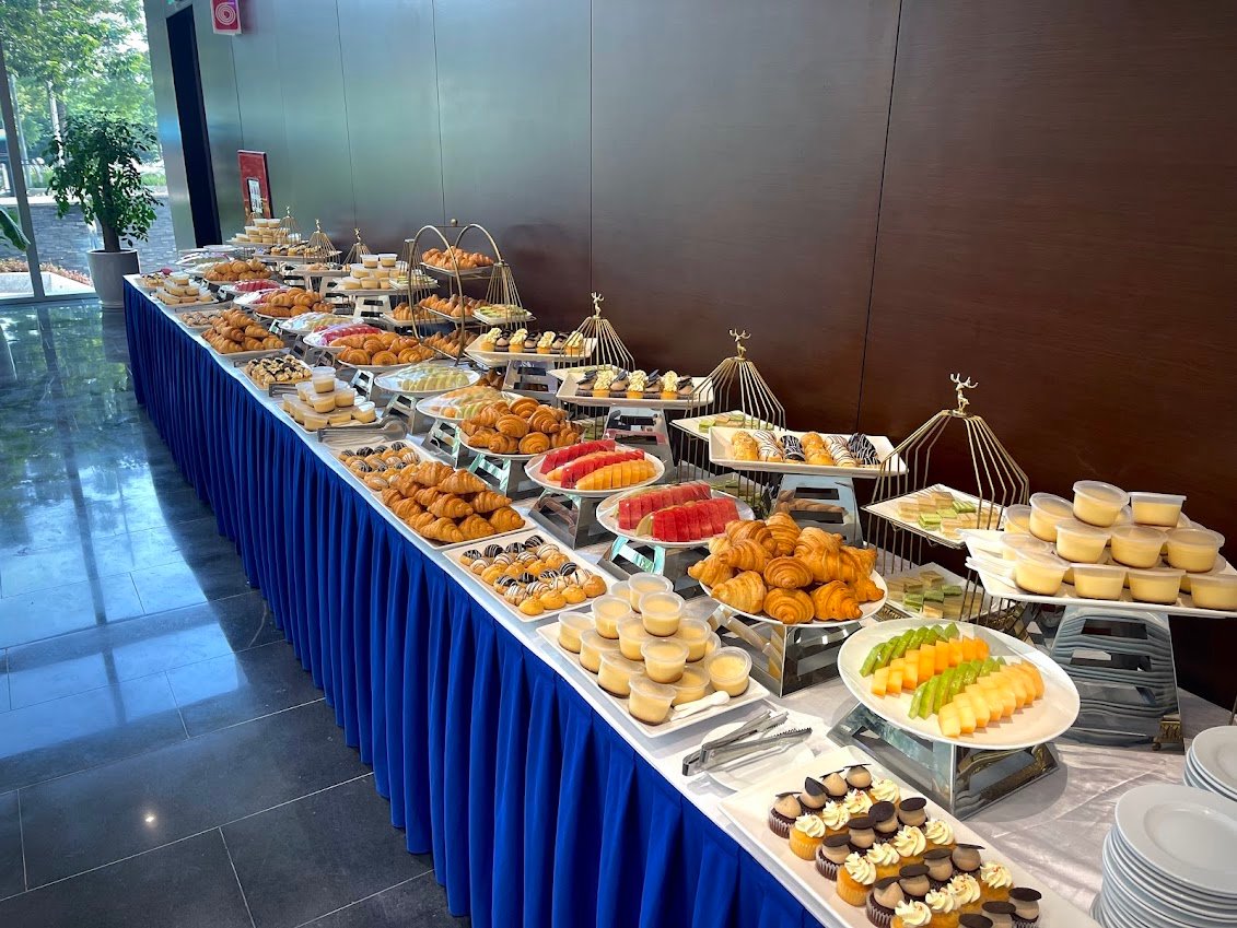 Teabreak thường bao gồm các món như bánh mặn – ngọt, trái cây, trà, cà phê, nước ép… được trình bày đẹp mắt trên bàn buffet.