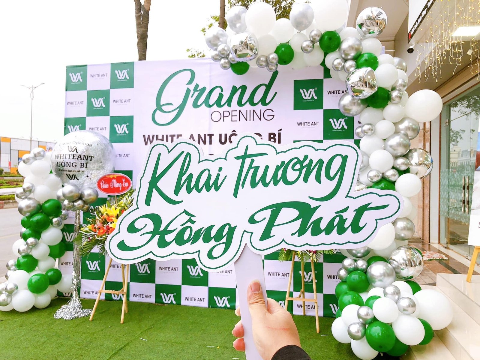 - Khu vực khai trương, khánh thành: Treo băng khánh thành, cột barie…